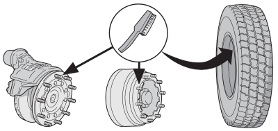 3. Znovu upevněte kolo ve stejné pozici, v níž bylo před demontáží. Zkontrolujte označení.