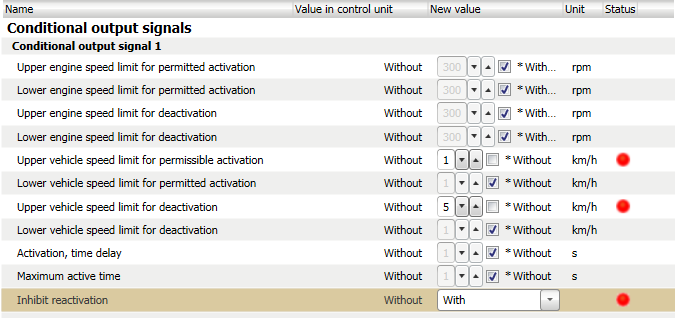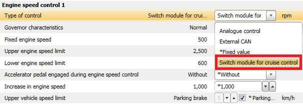 The speed values for conditional control must be adjusted with Scania’s programming tool for bodybuilders (SDP3), as shown in the illustration below.