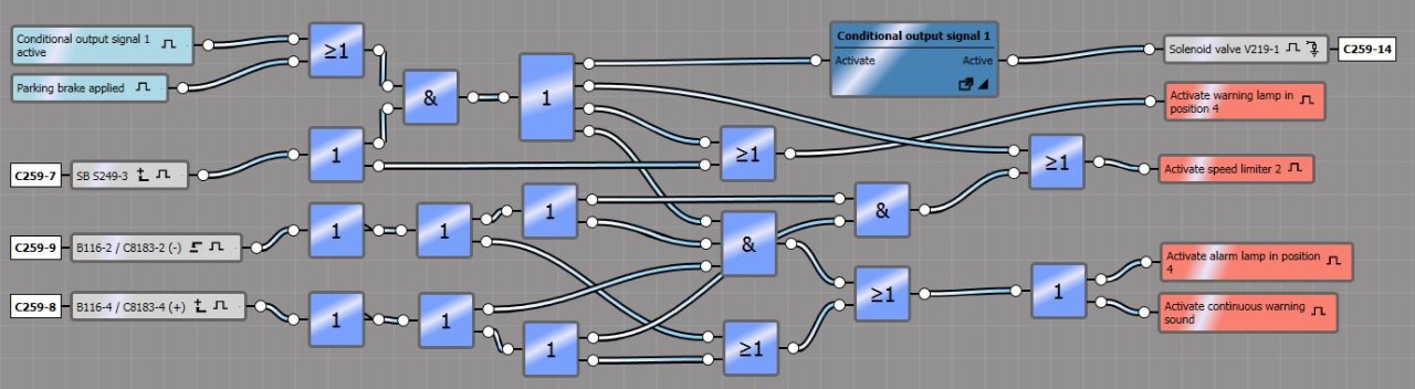 This BICT file contains same logic as ” EM5P1 BICT IO's basic template v2.0.bic” for diagram 1 with emergency switch input, however the other diagrams uses the configurable signals used by bodybuilders that wants control over external CAN bus for bodywork