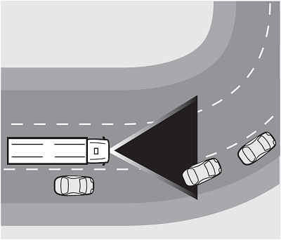 在进弯和出弯时,AEB 可能难以识别前方道路。 因此,AEB 可能遗漏道路车辆警告或发出错误的路边车辆警告。